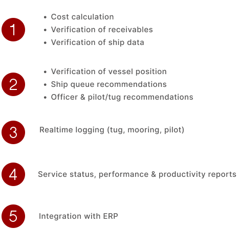 PMPrime supports port operations and administrations of port authorities in managing and reporting all activities occurring at port (vessel arrival, anchoring, berthing, towing, and piloting services, till generate invoices)